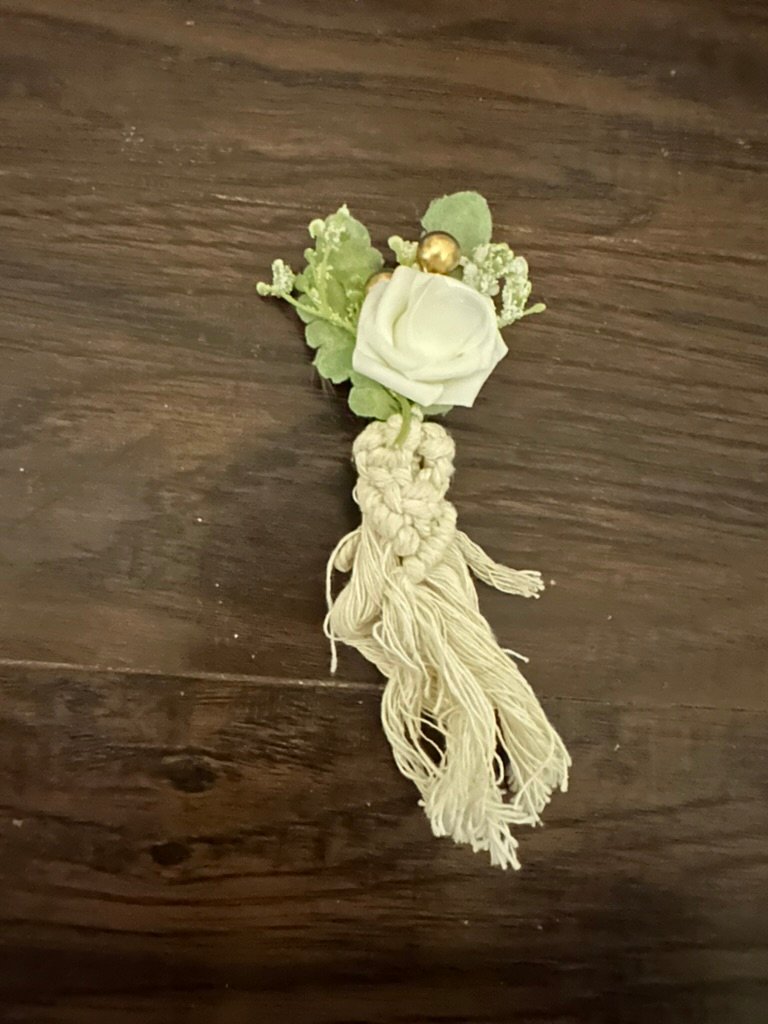 • Macrame Boutonniere – A lightweight, stylish option for grooms, groomsmen, or family members, designed to complement the bridal bouquet and overall theme.