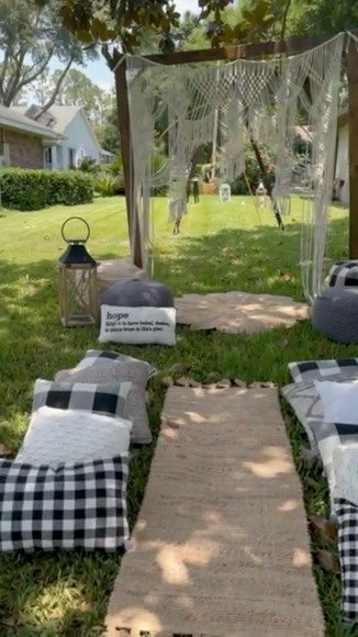 • Choice of Décor: Macrame backdrop, floral garland, or tulle draping (your pick to match your wedding style).