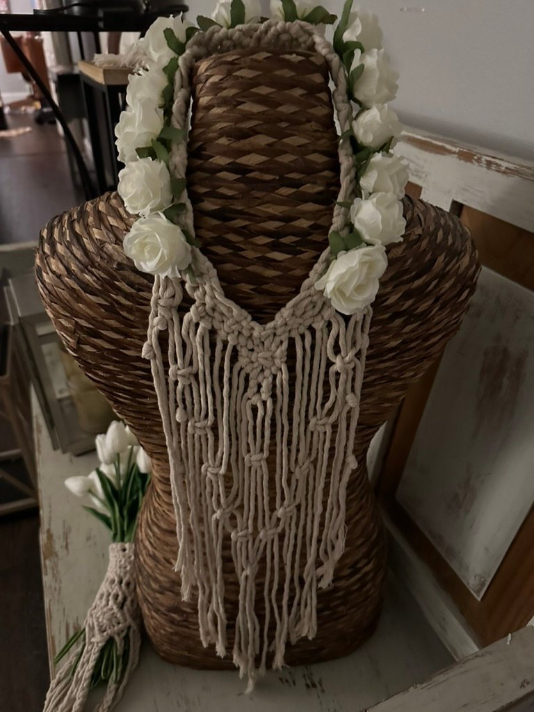 • Macrame Bridal Bouquet – A stunning alternative to fresh flowers, featuring intricate knot patterns accented with greenery or silk blooms for a romantic, timeless look.